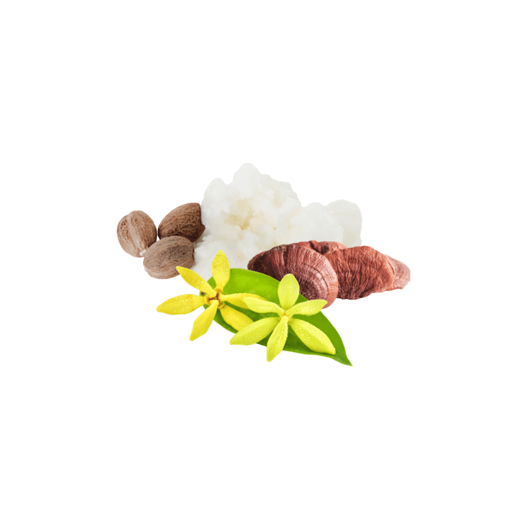 Ingredients: Butyrospermum Parkii (Shea Butter),Prunus Amygdalus Dulcis (Sweet Almond) Oil*, MARANTA ARUNDINACEA ROOT POWDER, Tocophérol (Vitamine E),, Glycérine (Glycerine) ,CANANGA ODORATA FLOWER OIL (ylang-ylang) BENZYL BENZOATE, BENZYL SALICYLATE, EUGENOL, FARNESOL, GERANIOL, ISOEUGENOL, LINALOOL, BENZYL ALCOHOl.. Conservez ce produit dans un endroit sec à l’abri de l’humidité et de la chaleur.