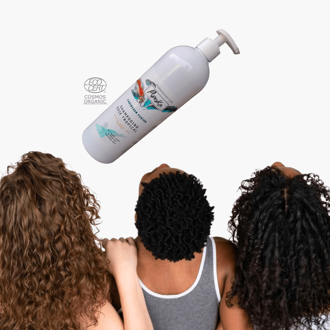 The Caribbean Fusion-inspired family size (1L) from Pipeska for fragile, soft hair that's easy to style.